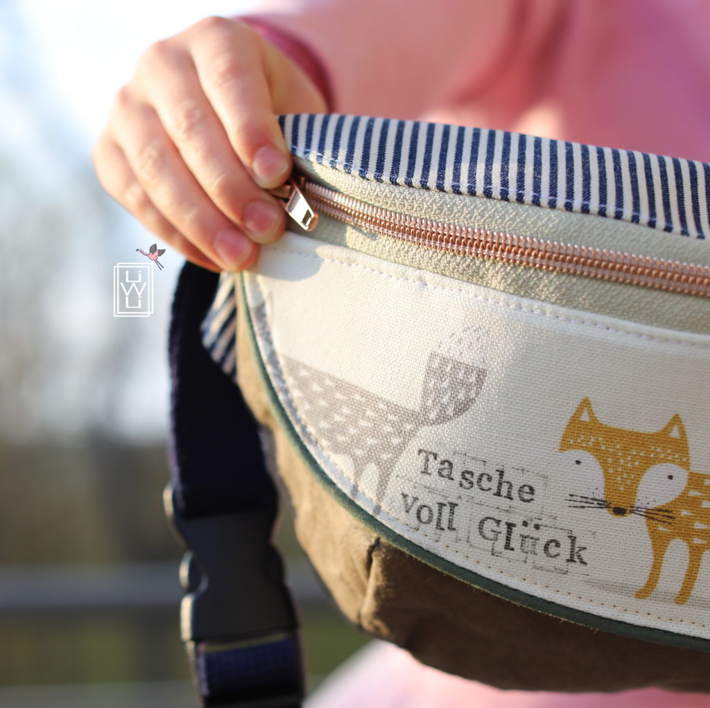Bauchtasche / Umhängetasche in 2 Größen – “Tasche voll Glück”: das neue Ebook von Lotte und Ludwig. Die praktische Tasche für unterwegs in zwei verschiedenen Größen und mit bis zu 4 Taschenfächern.